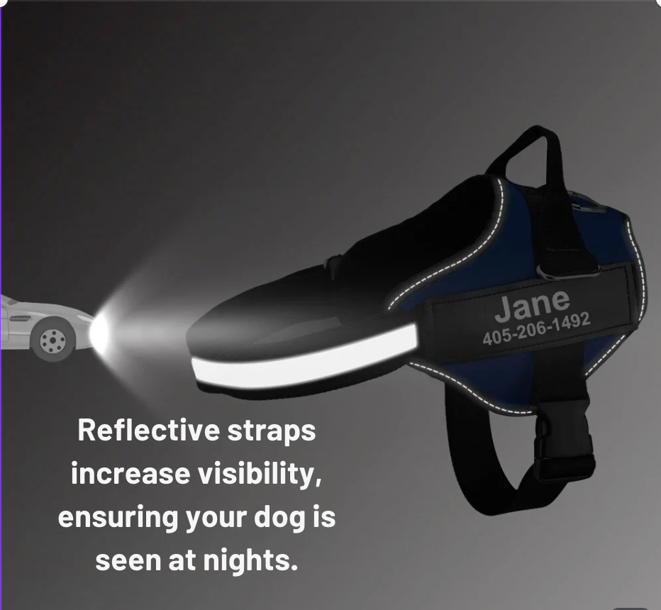 Yes! The harness is adjustable to ensure a secure and comfortable fit for your dog. It features soft padding to prevent chafing and allows full mobility for enjoyable walks. Be sure to check our size chart before placing your order to find the perfect fit for your furry friend!